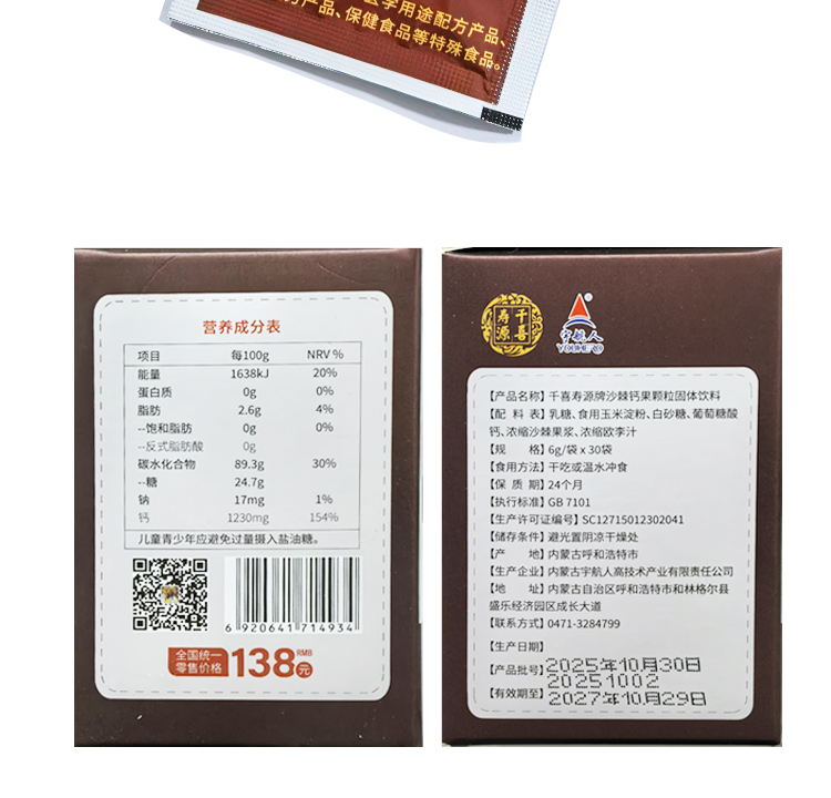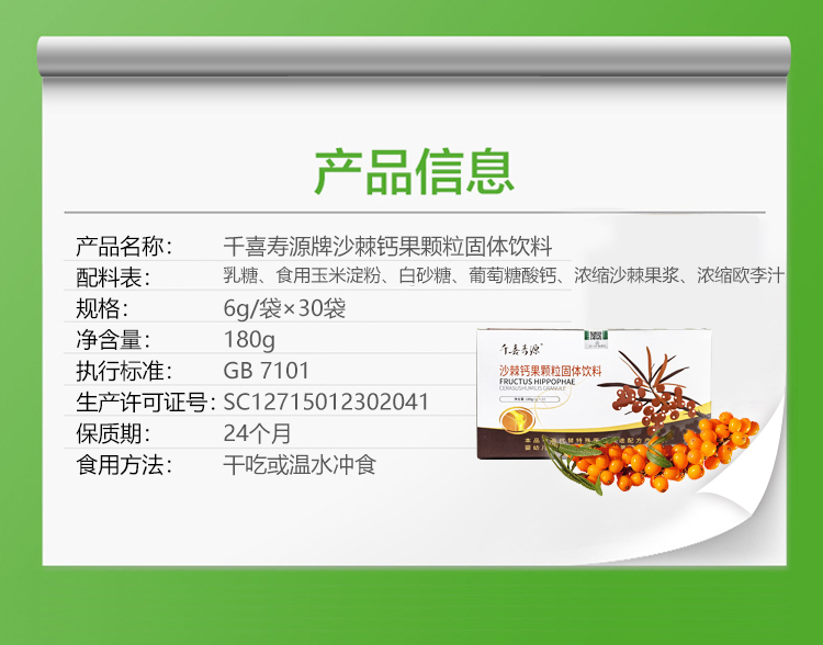 商品名称:沙棘钙果颗粒固体饮料 6g/袋(30袋/盒)